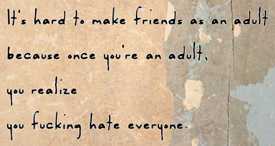 Sometimes I think this is why I have no friends… because I big part of me probably doesn’t really want any. Even though I do wish I had, like, one.
